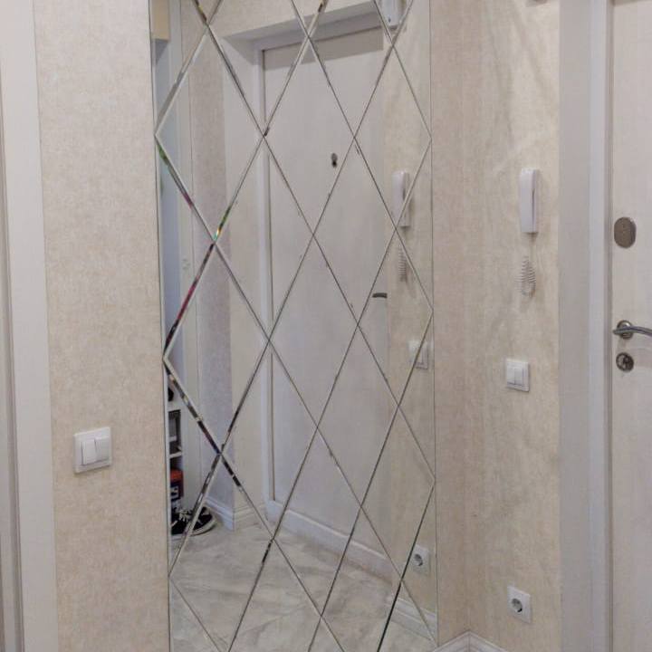 Использована зеркальная плитка "вытянутый ромб" с фацетом.